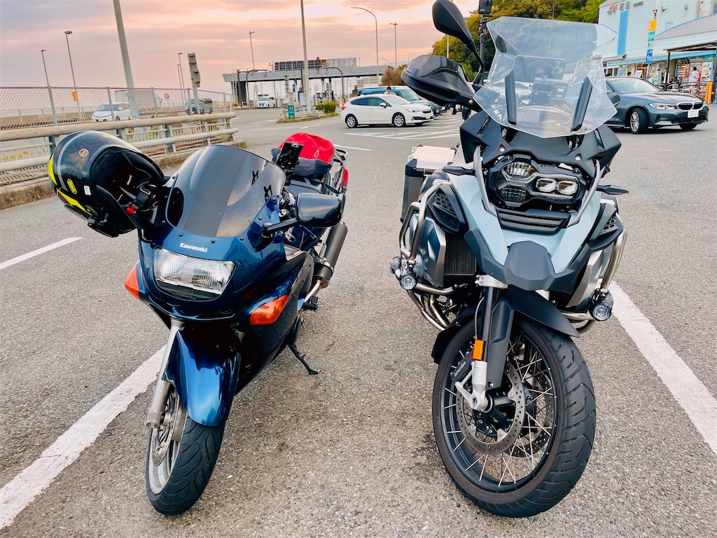 中古のZZR400(左)と新車の1250GS(右) 新旧モビルスーツくらいの違いがある印象w 気になる購入価格も私のバイクの購入価格の12倍以上です笑笑